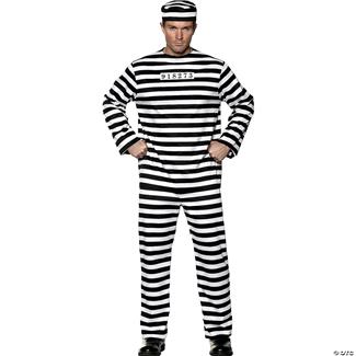 Adults Black & White Stripe Male Convict Jumpsuit Costume - One Size